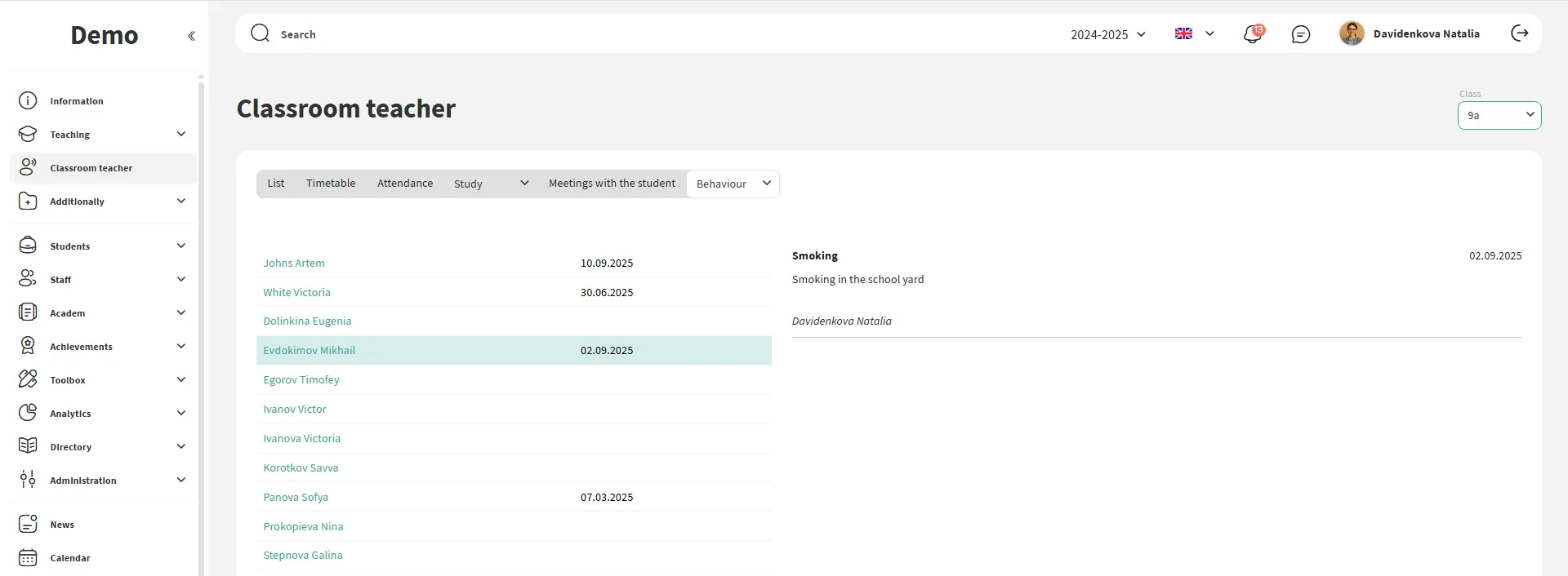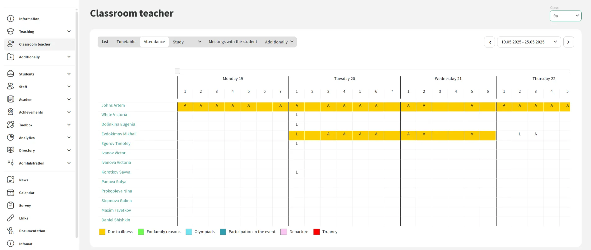 You can mark a student's absence or exemption in advance, so the information is immediately reflected in the attendance register and taken into account in analytics.