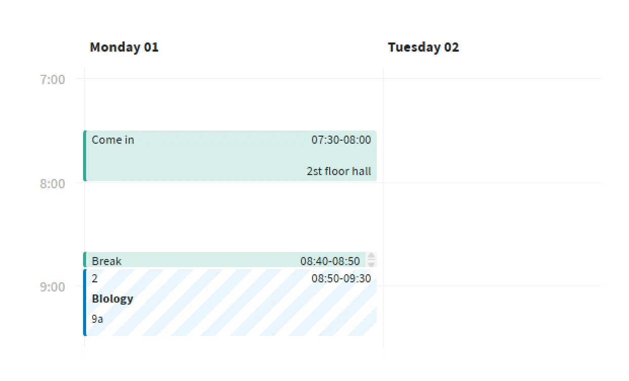 Setting Time Slots by Days and Time