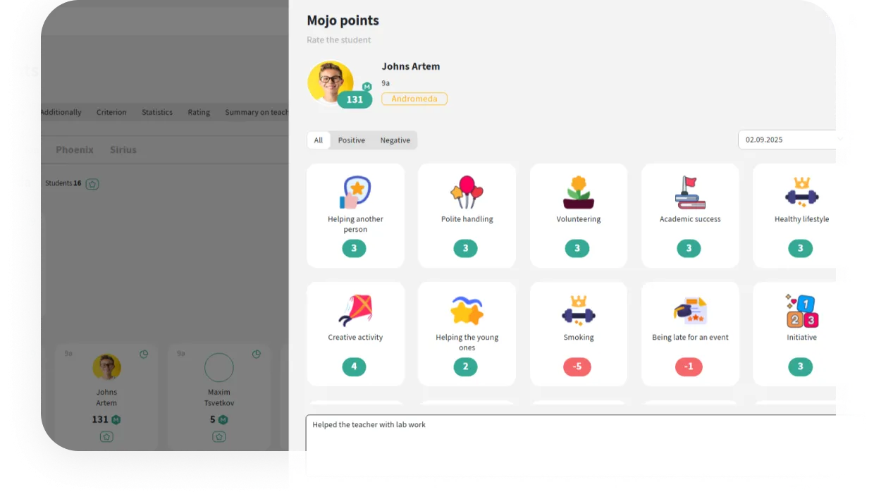 Points can be assigned in a few clicks