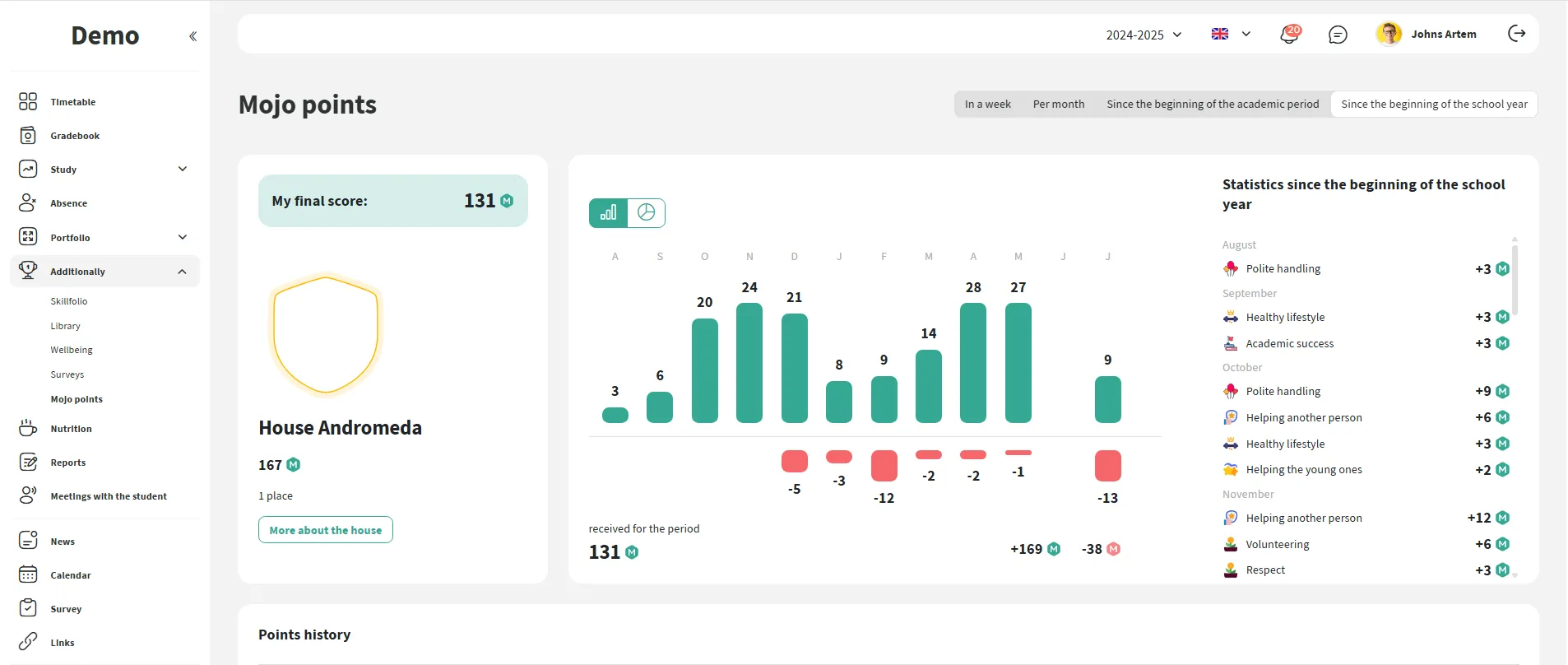 Students and parents see points and history in personal accounts