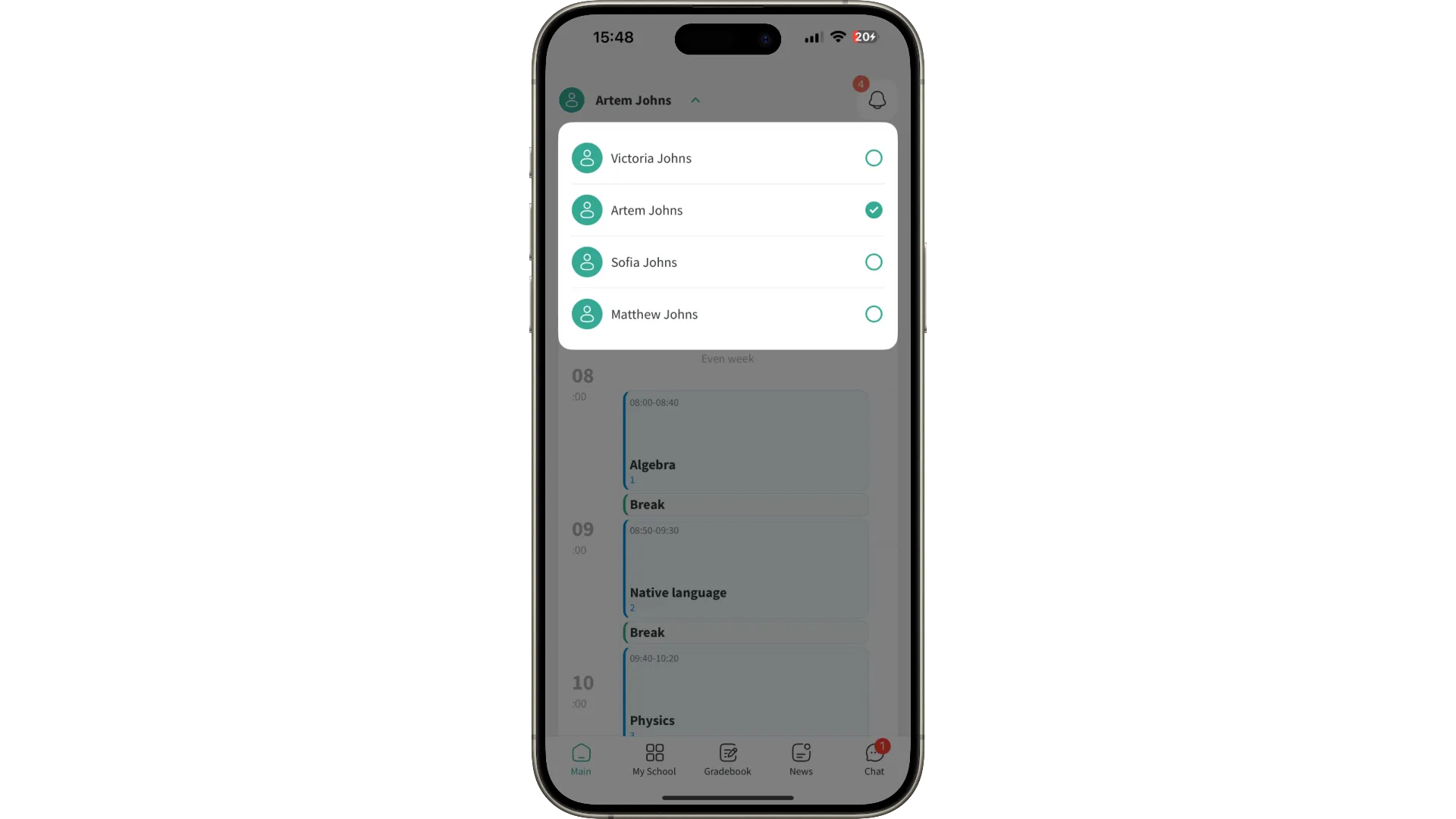One account — several children. Parents can switch between profiles and see individual information for each child.