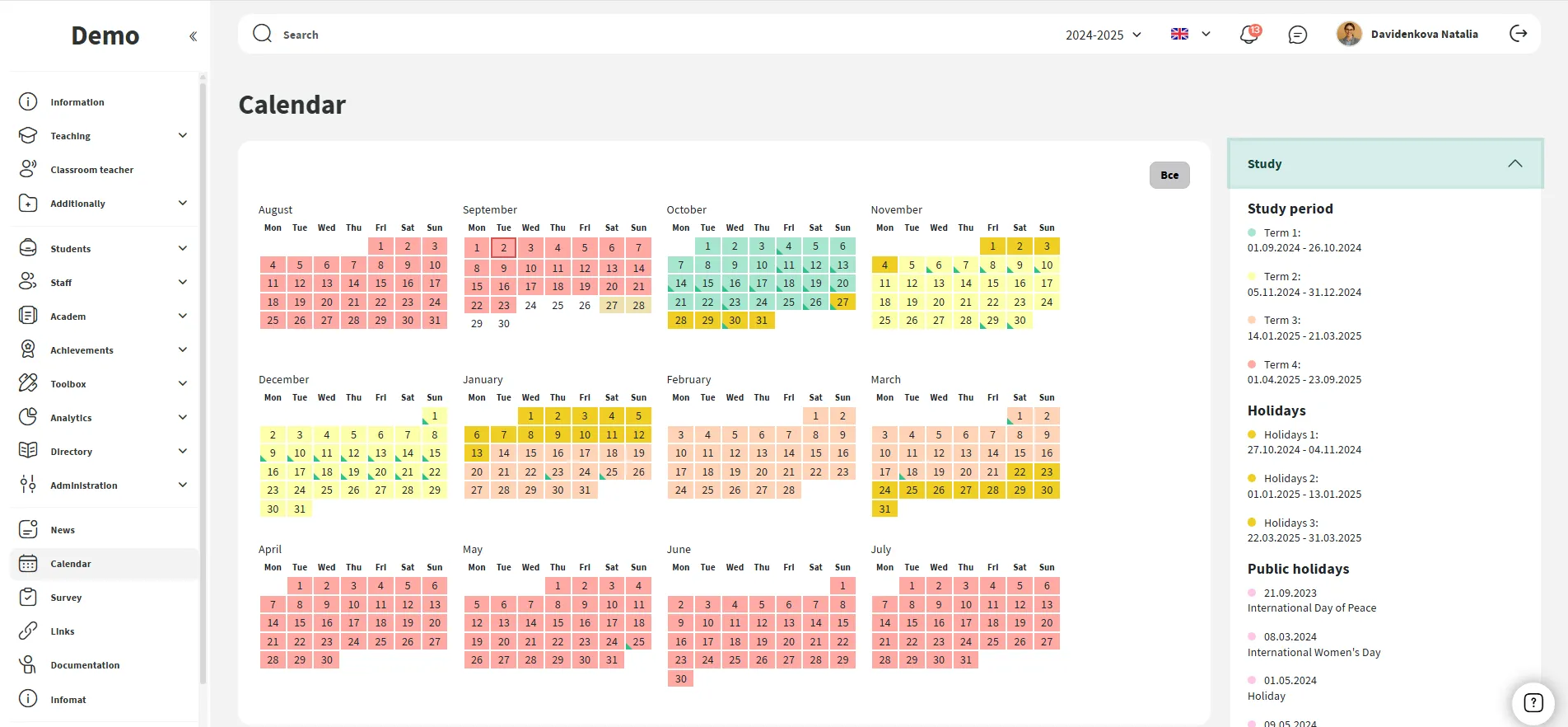 All participants in the educational process — from parents to teachers — can see when and what is happening at school.