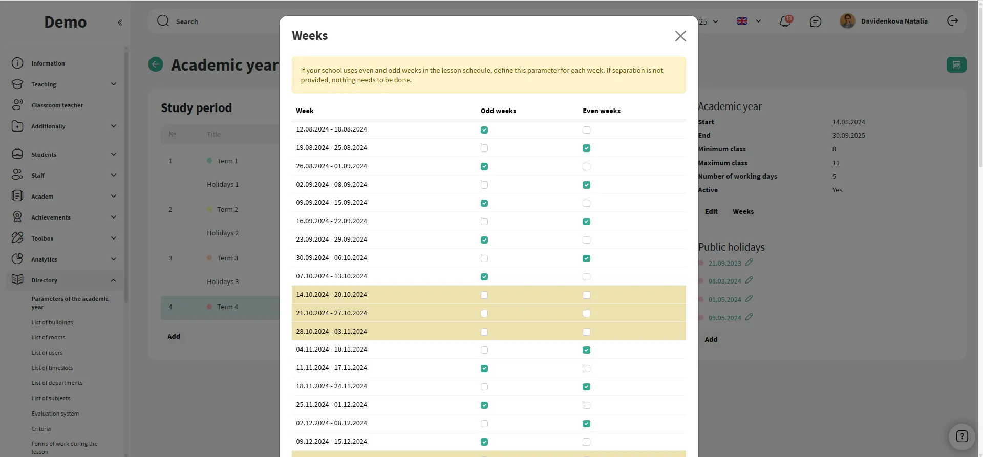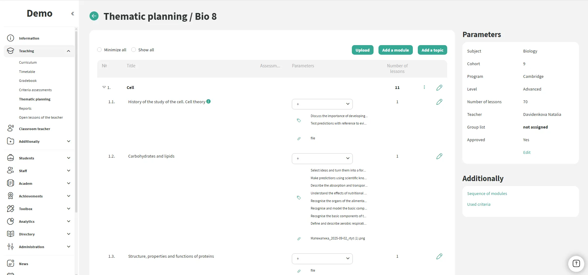 Teachers can allocate topics by weeks to plan the structure of lessons in advance. This facilitates preparation and helps maintain a consistent lesson rhythm.