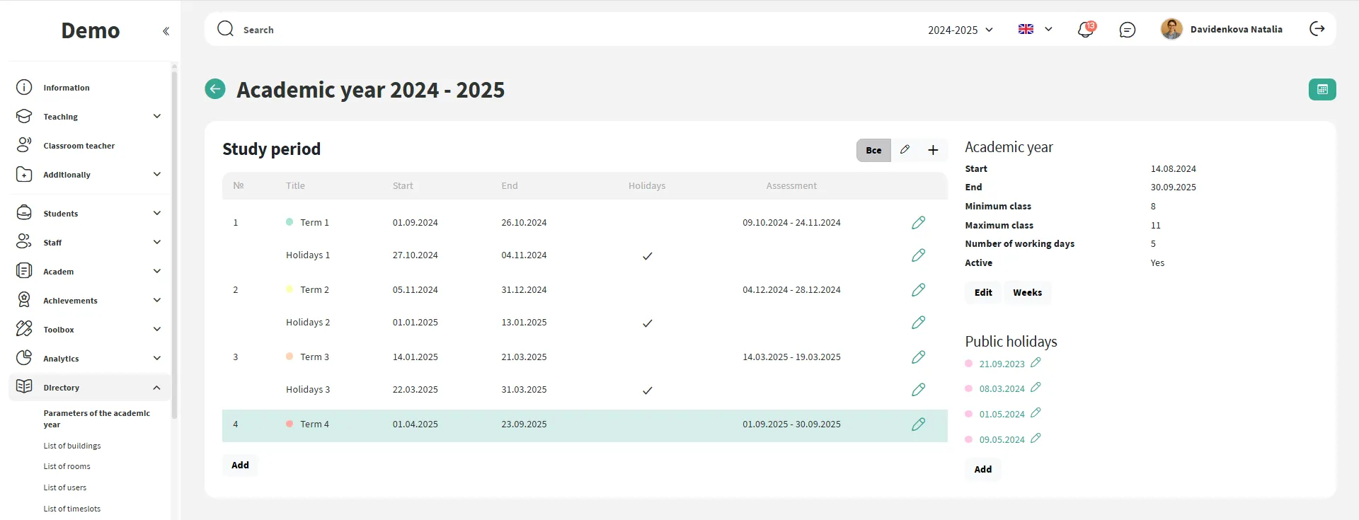 Design the year's structure considering quarters, semesters, holidays, and breaks. This serves as the foundation for all school processes.
